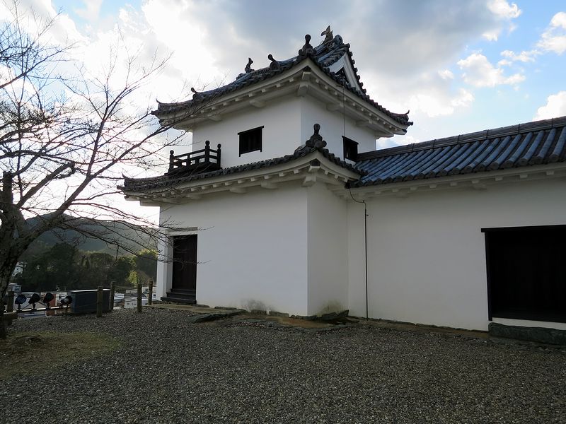 大洲城の二の丸はいくつかのエリアに別れていてやたらと広い印象なのですが、そのうちの肱川に面した部分は、川越しの攻撃に備えて玉櫓や鉄砲櫓という付け櫓の付いた二重櫓を配置して防御を固めていたようです。で、他の部分は帰りに見ることにして、とりあえず本丸へ。