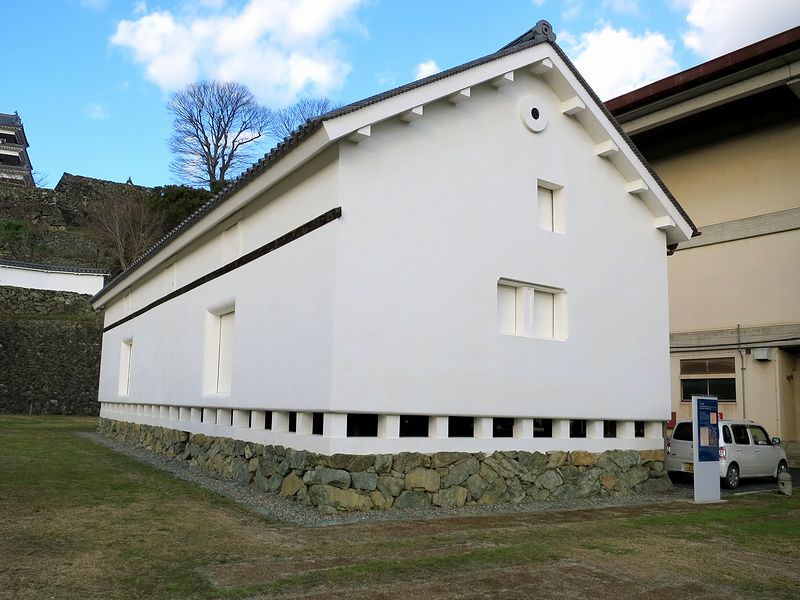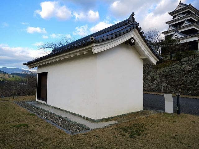 その後も二の丸は続き、だいぶ降りたところにあるのが下台所。食料庫として使われていた建物らしいです。で、こちらは当時の現存建物で、県の指定文化財となっています。