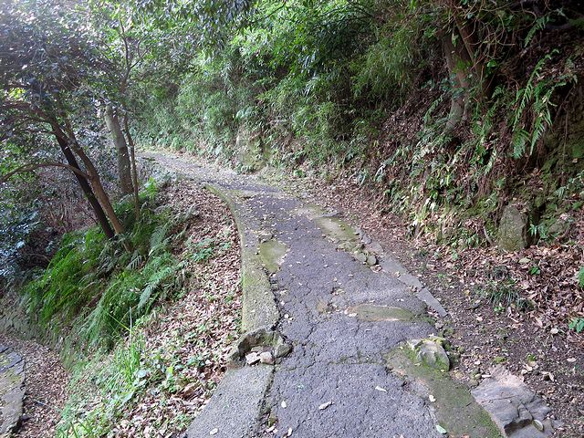 現在いる表側から城山へと登るルートは先述の弁天池付近からの東坂口と、蒸気機関車が置いてある付近からの西坂口の2つがあるのですが、今回は西坂口からアタックすることに。で、城山に足を踏み入れた途端、先程までとは全く違った雰囲気が。