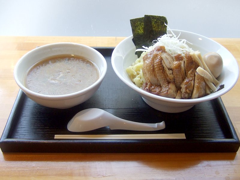 ドイツ料理のお店なのに、平日(と土曜日)のお昼時に、旨いラーメンとつけ麺をいただけるお店です。それで久しぶりの訪問だったので、ラーメンにしようかつけ麺にしようか、チャーシュウにしようか鶏モモチャーシュウにしようか(どちらも捨てがたい魅力が…)悩みましたが、結局とりモモちゃあしゅうつけめんをいただきました。