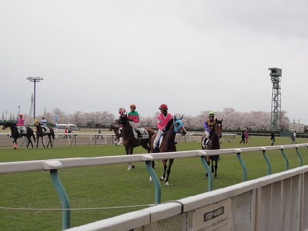 この日(平成23年4月23日[土])はもともと、第1回福島競馬の7日目が行われる予定だったのですが、東日本大震災のお陰でその福島競馬が(現在のところ第2回も含めて)中止になり、この翌週から開幕予定だった第1回新潟競馬を1週間早めて開催し、この日行われる予定だった第8回福島牝馬ステークス(G3)を移設して施行することとなりました。で、個人的にはこの日の夜に富山市で所用があったのですが、新潟競馬場から富山市の用務先までの距離や所要時間を調べたところ、メインレースの福島牝馬ステークス終了後直ちに向かえば、何とか間に合うことが判明。そんなわけで、久しぶり(ちなみに、前回お伺いしたのは平成16年8月22日(日)、第4回アイビスサマーダッシュ(G3)にてカルストンライトオ号が同レース2度目の優勝を飾った日。)にお伺いしてみる事にしました。