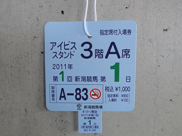 指定席の発売方法については、例年、夏の第2回・第3回開催の時は事前予約と当日発売が可能なのですが、春の第1回開催時は基本的に当日発売のみ。というわけで、競馬場に到着後速やかに指定券販売所の行列に並びましたが、その時間だと、どの席も充分に余裕があるようでした。ちなみに、今回の席は、アイビススタンド3階のA指定席。席にモニターこそありませんが、2人掛けで、しかも、無線LANが使用可能というのも良いですね。また、椅子そのものもNiLS21スタンドのS・E指定席より良く見えますし。もっとも、アイビススタンドは改修前のゴール板付近にある為、現在は(内回り及びダートコースでは)4角立ち上がりから直線にかけてという位置になってしまうのですが、今回購入できた席はターフビジョンが良く見えたので全く問題なし。それにしても、これで入場料込み1,000円というのは、(個人的には)安いよなぁ。