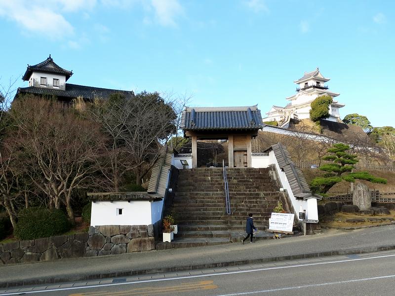 【掛川城の太鼓櫓と四脚門と天守】