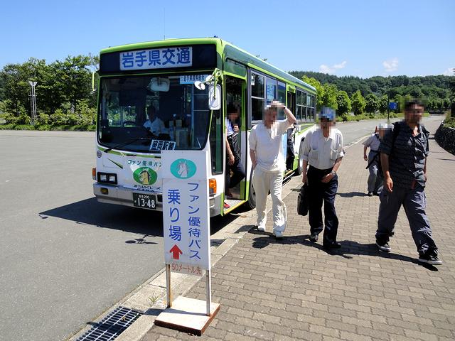 盛岡駅に到着後、東口のバス乗り場(8番)から無料優待バスに乗車。9時40分に発車したバスは市街地を抜け、郊外に行くにつれ、景色がだんだんと山がちになってきました。
