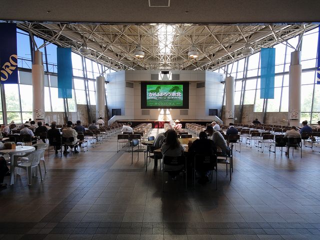 バスに揺られる事約30分、9時10分過ぎに盛岡競馬場に到着。山の中に巨大な施設が忽然とある感じですね。