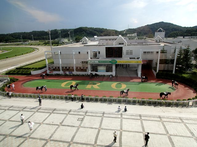 盛岡競馬場は、岩手県盛岡市にある地方競馬の競馬場。前述のとおり、主催は岩手県競馬組合。以前は盛岡市内の高松公園内にあり、別名:黄金競馬場と呼ばれていたそうなのですが、コース幅が狭くフルゲートが8頭のでしか設定できないなどの不便があった為、1996年に現在の場所に新設移転され、その際、別名の「黄金」をラテン語にした「ORO(オーロ)」から『OROパーク』という愛称が付けられました。(ちなみに、『黄金競馬場』については、明治4年に盛岡に競馬場が初めて[前述の高松公園内とは違う場所に]作られた際近くにあった『黄金清水』という清水[明治9年と14年に行われた明治天皇の東北地方御巡幸の際に御小憩所となった由緒あるところだそうです。]から名付けられたとの事です。)