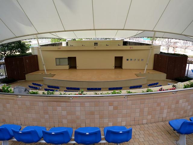 こちらは、スタンドの北端部(上の写真だと左手前方向)にくっついているイベントステージ。どうでもいい話ですが、こういうところって、何も無い日に写真撮ると、恐ろしく寂しく写りますね。