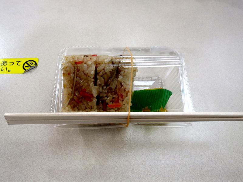 こちらは、同行者が朝食にいただいたもの。当地名物のかしわめしのおにぎりですが、味見させて貰ったところ、濃すぎない味付けが美味しゅうございました。