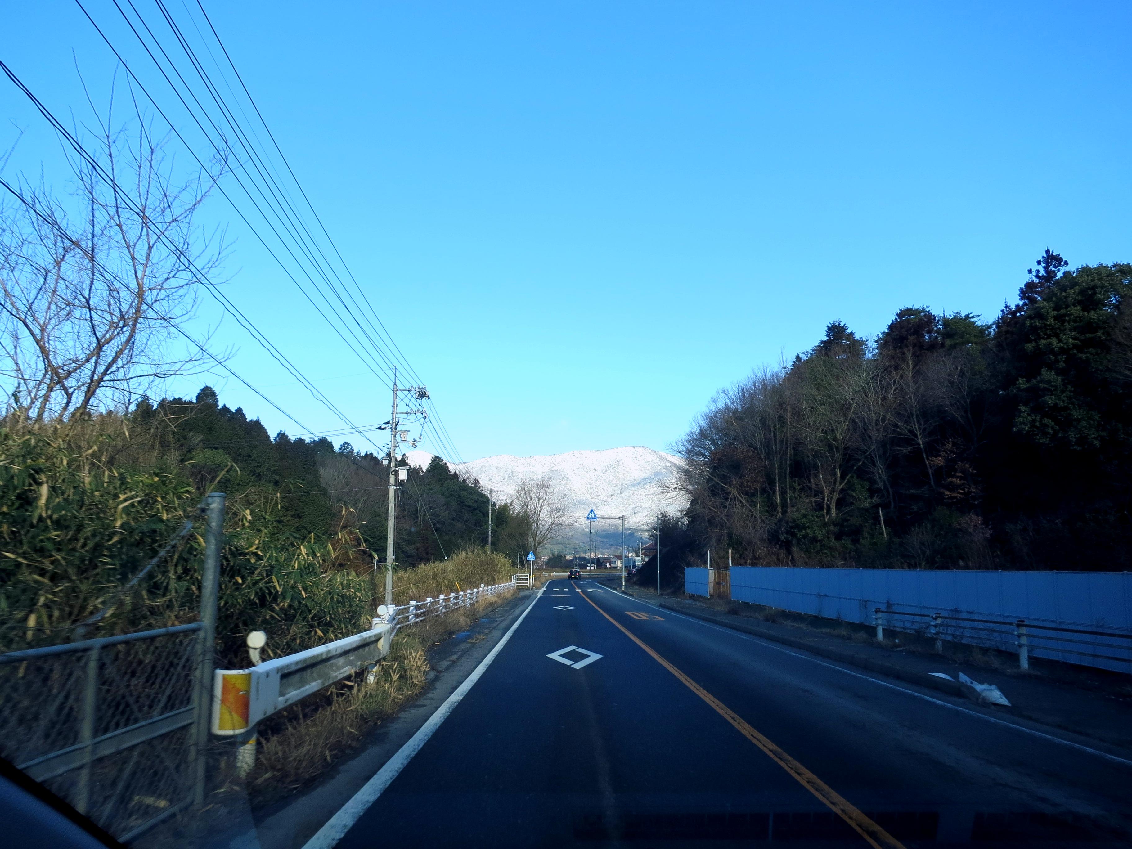 【向かう先には雪を被った山】