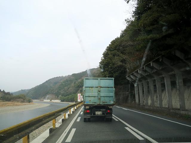 【国道187号で錦川沿いを(あと黄色いガードレール)】
