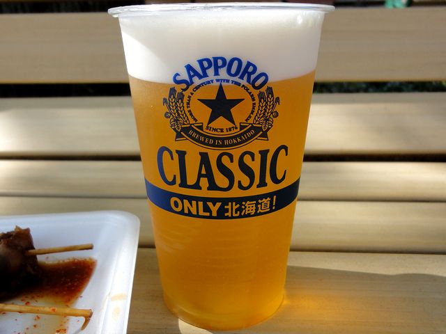 こちらは、正門から入ってすぐ右手の処にある売店『北の屋台村』で購入した物。つぶ貝焼は作っているところを見ると焼くと言うより煮てるようでしたが、噛むと結構柔らかくて磯の風味が良いですね。また、ほっき焼は歯応えがあり、噛み締める程に、という感じ。そしてほたて焼は安定感のある美味しさでした。ちなみに、ほっき焼とほたて焼は、炭火で焼いた物を隣のつぶ貝焼を煮ている汁にザブッと漬けて味付けしてたのが、何とも豪快というか。で、これらをつまみにいただくは、同じところで購入した北海道限定のサッポロクラシックとアサヒスーパードライなのですが、貝には後者の方が好みだったりして。でも本当は、カップ酒でもいきたかったんですがね。(飲むと止まらなくなりそうだったので止めましたが。)あと、他にもこちらではジンギスカンとか売っていて、お腹に余裕があればもっといただきたかったなぁ、なんて。