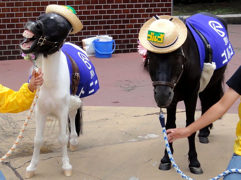 入口では、ミニチュアポニーのゴルゴ君とトニー君ががお出迎え。トニー君、丁度いい顔しましたね。