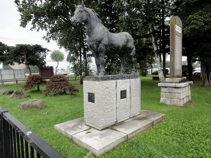 正門を入って左手の所にあるのが、明治から昭和初期にかけての大種牡馬であるイレネー号の銅像。イレネー号については、明治43年にフランスから導入され、当地の馬産、ひいては北海道の開拓に多大なる功績を残したとのですが、559頭もの産駒を遺し、昭和3年に事故で亡くなってしまいました。ですが、その功績を讃えるため、十勝畜産組合が昭和5年に銅像を建立。一度は第二次世界大戦中の金属回収令(金属供出)により失われたのですが、昭和39年に十勝農業協同組合連合会によって2代目の銅像が建立され、それがこの像。ちなみに、その血脈は、現在走っているばんえい競馬の競走馬にも受け継がれており、また、イレネー号の名前を冠したレース(イレネー記念)も行われています。