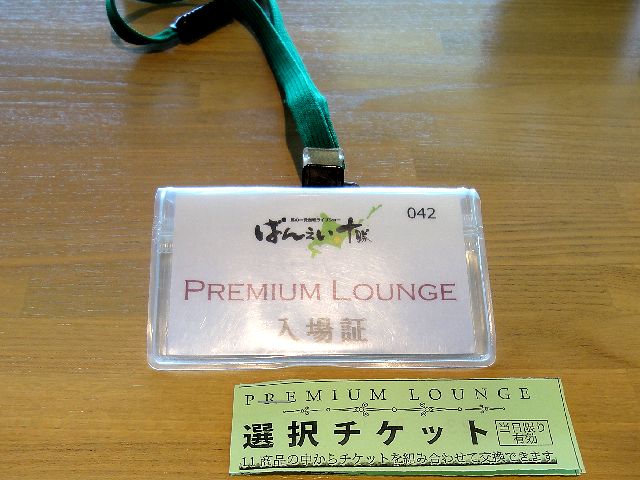 【プレミアムラウンジの入場章と選択チケット】