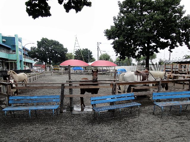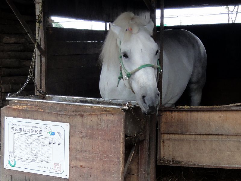 以前パドックだったところは、現在、『ふれあい動物園』として、ばんえい競馬のPR馬で帯広市から特別住民票が交付されているリッキー号とミルキー号のおうちや、ポニーなどのお馬さん、ヤギやウサギなどの動物と、えさ(有料)をあげるなどふれあうことが出来ます。それにしても、2頭のPR馬は、毛色の他キャラクター(おとなしいリッキー号と積極的に絡んでくるミルキー号という感じでした)も違っていて面白かったというか、可愛かったですね。