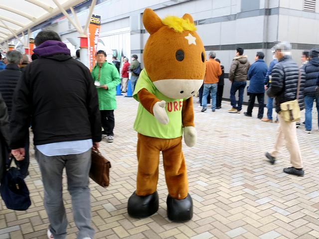 JRAの競馬場ではすっかりお馴染みになったターフィーさんのお出迎えですが、次々入場する人達の流れが速すぎるのと、この日この時間に入場するのがオッサン、オニーサンばかりだったので、スルーされ気味だったのがちょっと可哀想だったというか。