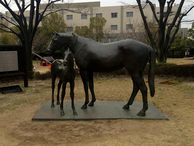 写真撮ったのが夕方だったので色味的に寂しくなっちゃってますが、平成15年に中京馬主協会創立50周年記念寄贈品として設置されたそうで。