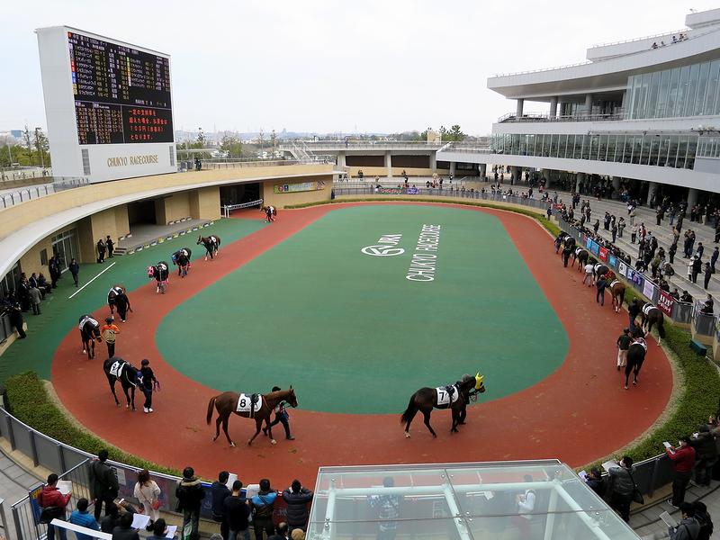 中京競馬場のパドックは、ローカル競馬場らしく色々とコンパクトな印象。先の改修の際、リニューアルされたそうで。