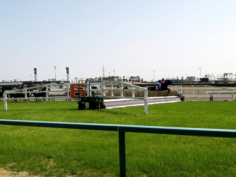 先述のとおり、障害レースの際は芝コースに置き障害(仮設障害)を設置して行われます。それにしても間近で見ていると、飛越の際、馬体が障害に当たる音とかすごいです。