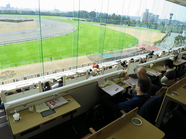 それで今回予約したのは、スタンド5階最前列の最もペガサス寄りの席。で、A指定席は4階と5階がぶち抜きになっているので、スタンドの真ん中へんになります。で、今回の席ですが、特に強い印象は。個人的には多少馬券が買いづらくてもスタンド最前列席が好きだったりするのですが、A指定席だとそこが事前に予約できなかったのが痛かったです。(B指定席ならあったのですが、前述の理由で…。)っていうか、ネット予約開始時の混雑というか、やっと繋がったと思ったら取りたい席が無いという状態は、ちょっと辛いなぁ、と。