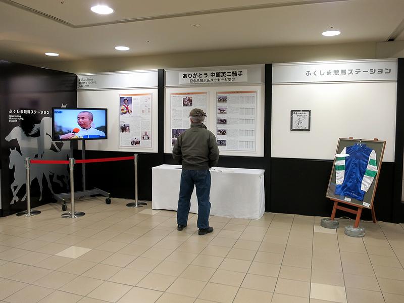 今回の開催では、この3月で引退して調教師になられた、中舘英二元騎手に関する展示が、スタンド1階のふくしま競馬ステーションで行われていました。現役時代、福島競馬場で騎乗馬のオッズが妙に下がるなどそのローカル巧者っぷり、そして絶妙のスタートからの逃げ戦法を得意とするなど個性的なジョッキーで、個人的にも何度もお世話になった(と共に、何度もやられた)のですが、今後は調教師として、個性的な競走馬を送り出していただければなぁ、と。ありがとうございました。