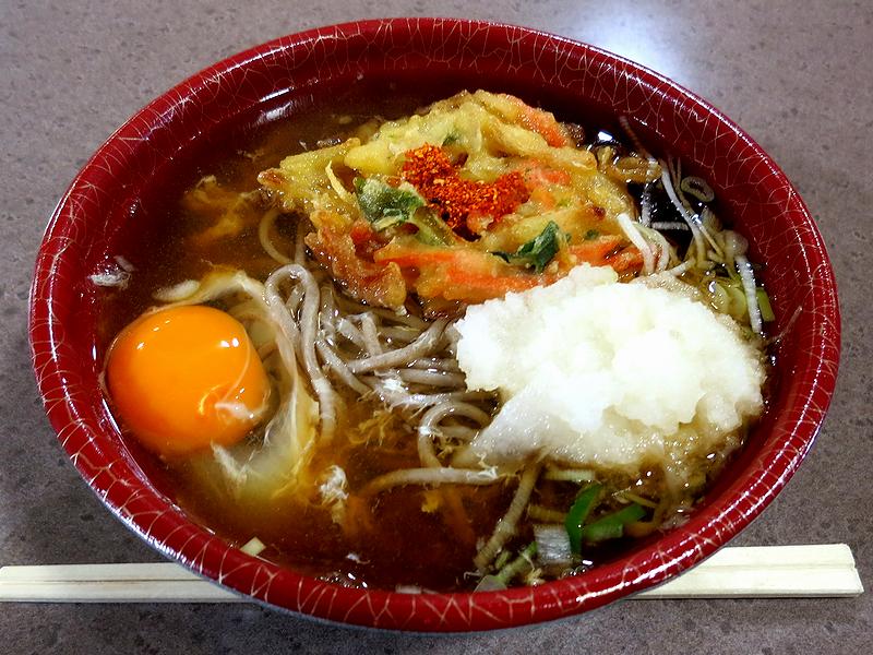 【かき揚げそば 420円+生卵 50円】