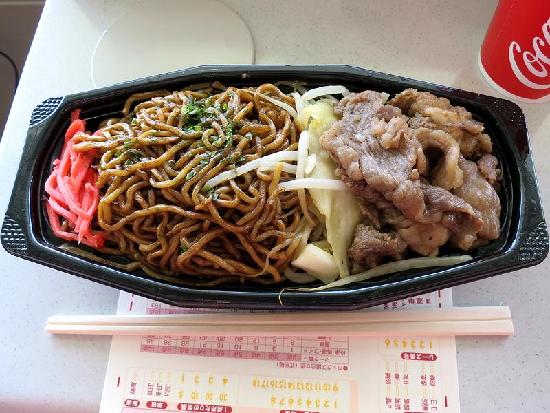 こちらは、見た目どおりソース焼きそばに焼き肉が添えてあるという感じの品。作り置きで若干冷めてしまっていたせいで、お肉の噛み応えが増していたのは残念だったのですが、お肉の量は結構ボリューミー。で、今回は一緒に飲まなかったのですが、これは間違いなくビールに合いそうですね。