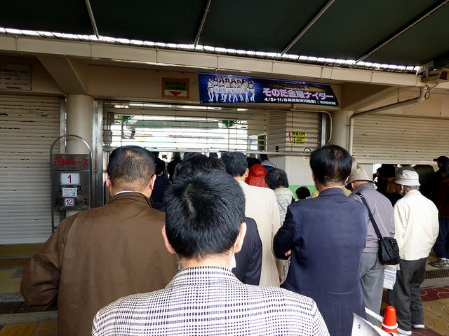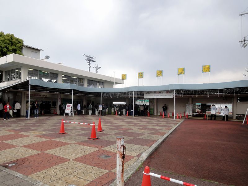 で、じつはこの時間だとまだ駐車場は開いていないはず(公式サイトだと午後1時30分開場)なのですが、警備員さん?のご厚意で、前回来た時と同じ第3駐車場にクルマを停める事ができました。その後一度正門まで行き、専門紙売り場でキンキと園田ニュースを購入。暫しの間、車中で本日のレースの予想をば。そしてちょっと早めというか午後1時半頃正門前に移動し、特別観覧席券を購入。やがて午後1時55分頃開場となり、皆に続いてぞろぞろと入場しました。