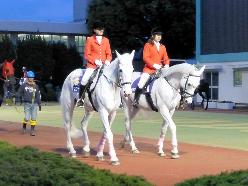あと、園田競馬場で忘れちゃいけないのが、お爺ちゃんだけどとってもラヴリーな誘導馬のマコーリー号。園田競馬場は出走各馬の馬場入りの際、後半戦から誘導馬がつくのですが、マコーリーさんは確か9レースから登場。元はJRAの京都競馬場で誘導馬をやっていた(平成24年に転入)メイショウシャーク号と供に、元気に誘導にあたっていました。いつまでも元気でいて欲しいですね。