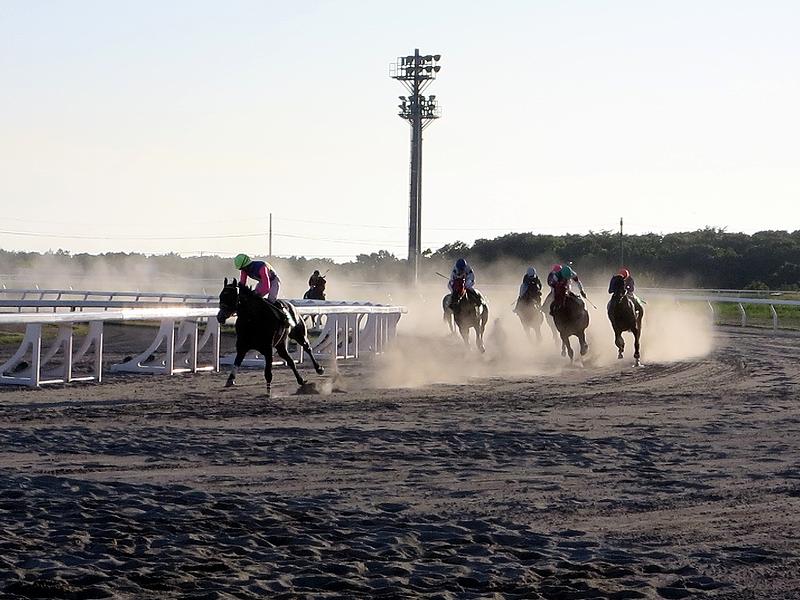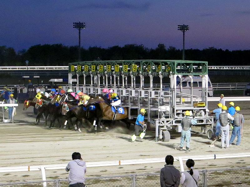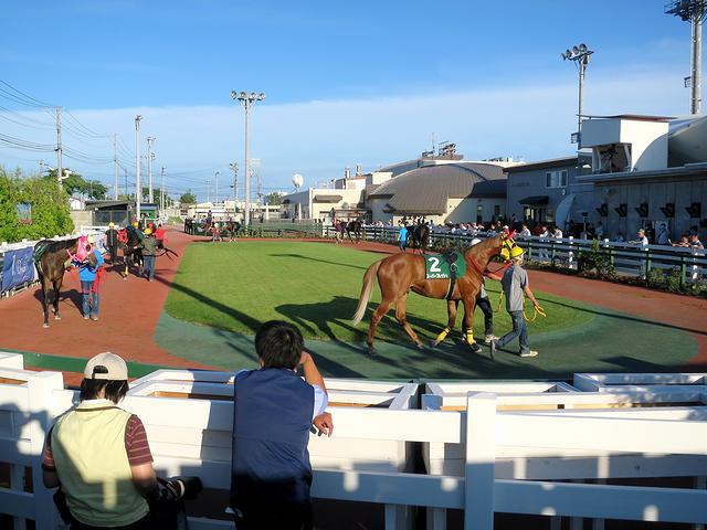 まずコースですが、今年度(平成27年度)より1周1376mの内回りコースの使用が開始されました。この内回りコースは、従来の1周1600mコースの第3コーナー手前から内側に分岐し従来の第4コーナーを過ぎたところに合流するショートカットで、最後の直線は従来(外周り)コースの330mから218mとなります。というわけでレースの設定可能距離が、これまでのコース(外回り)を使用した1000m、1200m、1700m、1800m、2000mに加え、内回りコースを使用する1500mと1600mと、わりとメジャーな距離のレースが出来るようになったというか。ただ、内回りコースは照明装置が備え付けられていないため、1500mと1600mのレースは日没前に施行するよう番組が組まれるとのこと。ちなみにフルゲートは、1500mと1700mが12頭、1000mと1600m、そして1800mが14頭、1200mと2000mが16頭ですが、重賞以外は12頭立てでレースが行われているそうで。