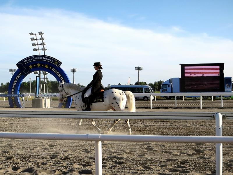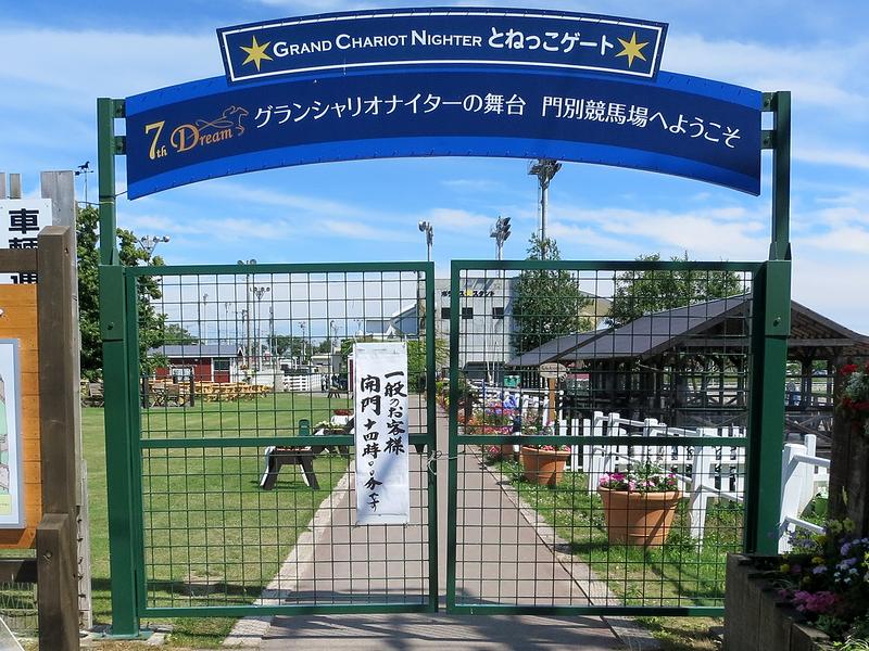 本日の開門時刻は午後2時ということで、クルマの中で1時間弱待ってから入場することに。で、ゲートにあしらわれた「7th Dream」というのは、今年門別競馬場でのナイター開催『グランシャリオナイター』が7周年を迎えたことによるキャンペーンのキャッチコピーだそうで。それにしても、門別開催もすっかり定着したというか、一時はホッカイドウ競馬存続の危機からよくぞここまでという感じです。