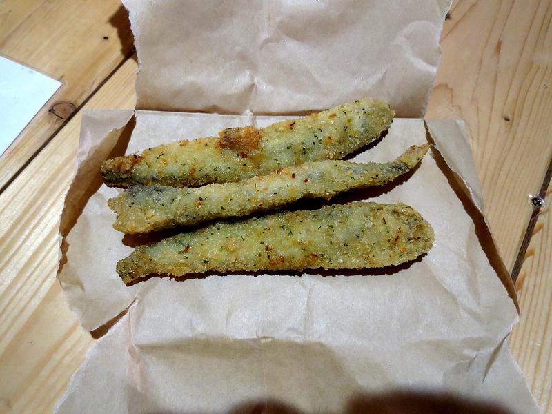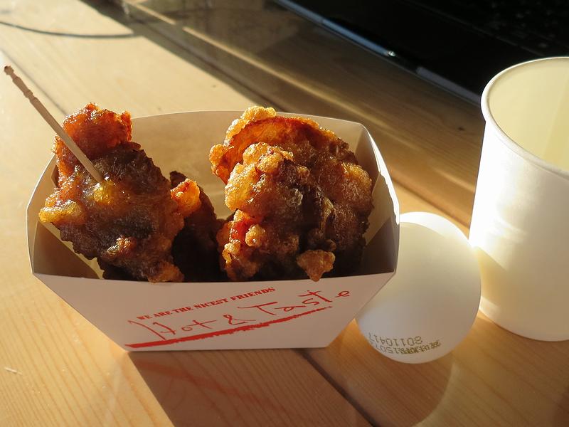 こちらは、私がビールのお供にいただいたもの。ただのフライにあらず、見た目からしてちょっとオシャレなのですが、ちょっとスパイシーな感じがしてGood。揚げてから少々時間が経ってしまっていたのですが、揚げたてならもっと美味しかったでしょうね。