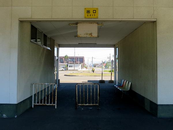 冒頭の写真のとおり、正面から見るとあたかもまだ鉄道があるようにも見えるのですが、裏手というかホーム側に回ると、線路はきれいに撤去され、更にはかさ上げされた上で舗装もなされ(その舗装も、経年によって箔が付いてきていました。)駐車場として利用されていました。