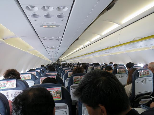 バニラエアJW903便の使用機材は、エアバスA320。っていうか、バニラエアさんは、使用機材すべてがA320なのですが。あと、LCCはシートピッチが狭いと聞いていたのですが、確かに、以前載ったことがあるANAのA320に較べれば狭いものの、そんなに気になるほどでは。(航空会社のウェブサイトで調べたところ、ANAのA320が28列、バニラエアのA320が30列と、2列違いました。)それで特に遅れもなく駐機場を出、離陸。本州上空は雲の上を飛行していたのですが、津軽海峡を過ぎる頃には雲も消えてきて、快晴とまではいかないものの晴れ間が広がる新千歳空港に、午前9時過ぎにタッチダウン。タキシング中にシートベルトを外して立ち上がる乗客がいるのがLCCって感じでしょうか。それにしても、この道中、自席のちょっと前方にした乳児くらいの子供がほぼ泣きっぱなしだったのですが、1時間以上泣き続けられる体力に感心しました。