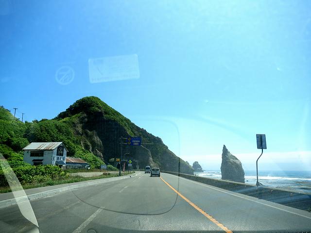 シルクジャスティス号と感動の対面を果たし、あとは、今夜の宿のある釧路まで。で、ここからまっすぐ向かっても約250kmほどあるのですが、時計を見るとまだ午前9時半なので、時間的には相当余裕があることに。もっとも、これは元からわかっていたことなので、50km程余計に走ることにはなるのですが、襟裳岬を回っていくことにしました。それで再び国道235号に戻り、太平洋沿いをひたすら走行。海なし県に生まれ育ったので、いくつになっても、何度走っても、海沿いというのは特別な感じがします。そして道なりに進むと浦河町でそのまま国道336号に入り、更に道なりに進むとえりも町で北海道道34号襟裳公園線に入れば、襟裳岬はもうすぐでした。