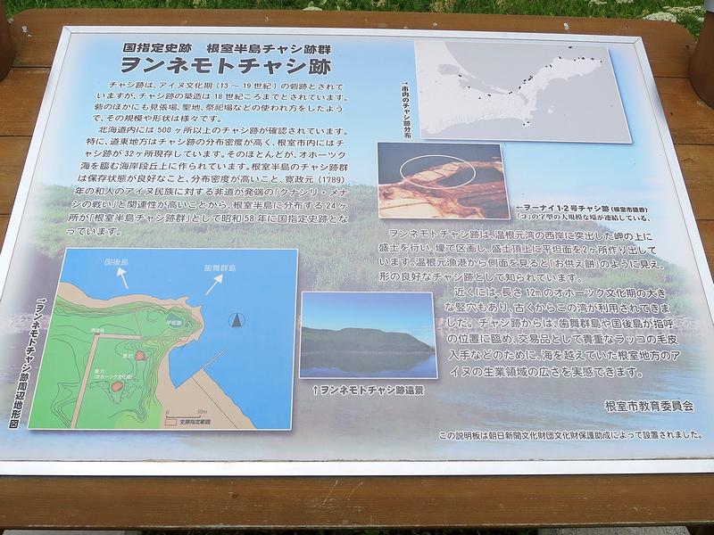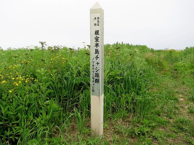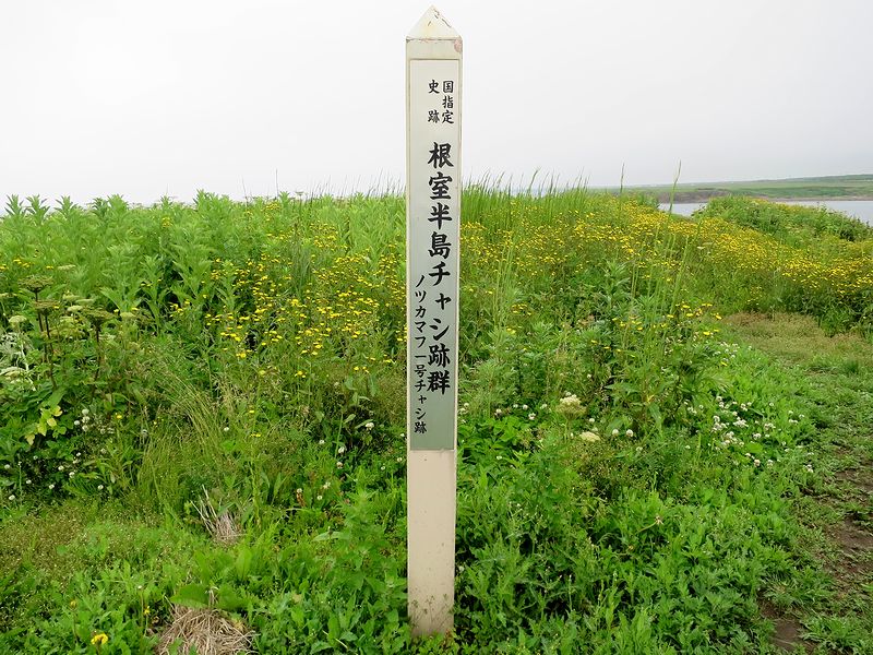 それで現在は、北海道内に500カ所以上のチャシ跡(チャシコツ)が確認されているそう(未確認のものも含めるとその数は700とも1000とも言われているそうで。)なのですが、そのうち根室半島にあるものについては、1789年のアイヌ民族と和人の戦いであるクナシリ・メナシの戦いと関連するとされ、学術的に大変貴重だそうで。また根室市内には32カ所のチャシ跡があるのですが、海を臨む崖上に、半円形や方形の壕を巡らした大規模な「面崖式」のチャシ跡が多いそうで、そのうち24カ所は「根室半島チャシ跡群」として、昭和58年(1983年)及び昭和59年(1984年)国指定史跡に指定されました。