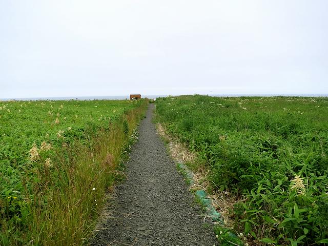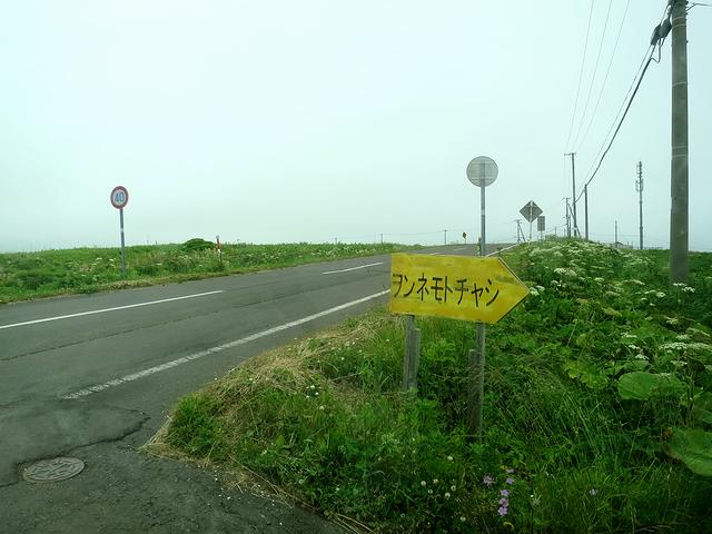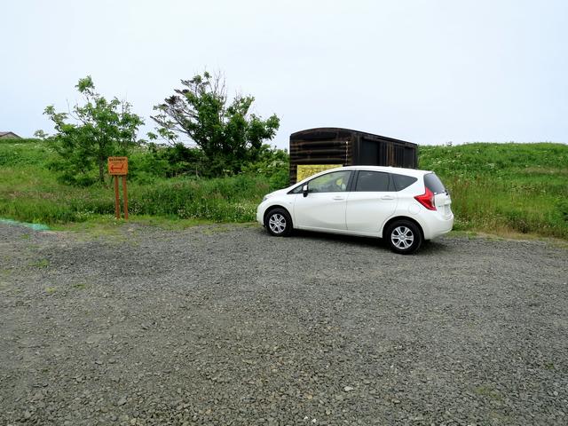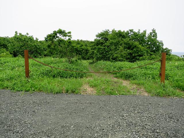 ヲンネモトチャシから再び北海道道35号根室半島線を走ること10分少々で到着。で、先程のヲンネモトチャシよりは駐車スペースはだいぶコンパクト。(観光協会のパンフレットには2台分と書いてあります。)幸いなことに他にクルマも無かったので無事停められました。で、そこから先、鎖が張ってある奥が、チャシへと続く通路になっています。