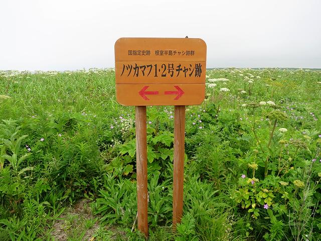 で、この後、納沙布岬に行ってから、チャシ跡巡りをスタート。本来なら国指定史跡24カ所を全部回ってみたかったのですが、今回は見学用の設備が整備されているヲンネモトチャシ跡とノツカマフチャシ跡の2カ所だけまわることにしました。っていうか、草生い茂る夏場は、チャシ跡見学に適さない季節たったりするんですよね。