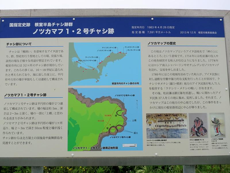 ノツカマフ(ノッカマフ)チャシは、根室市牧の内にある面崖式のチャシ跡で、ノツカマフ1号チャシ、ノツカマフ2号チャシという2つのチャシ跡からなっています。