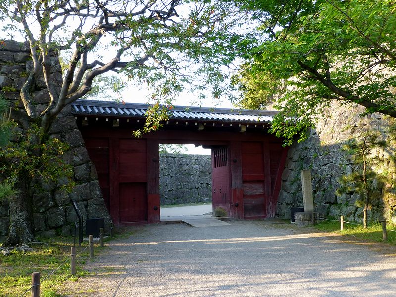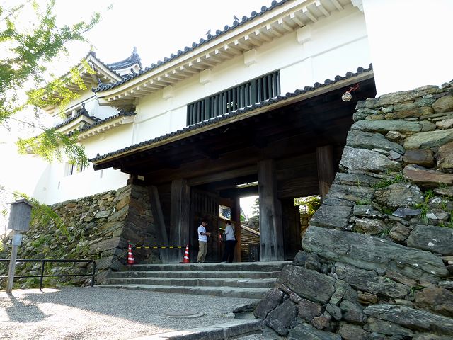 国の重要文化財に指定されているのがこの岡口門。浅野時代の初期には大手門だったのが、その後搦手門となったそうで。で、現在残っているのは元和7年(1621年)に紀州徳川家初代藩主である頼宣が行った城の大改修の際に再建された櫓門なのですが、再建当時は現在の切妻屋根の門櫓の両側に続櫓があったのが、残された櫓台からもわかります。