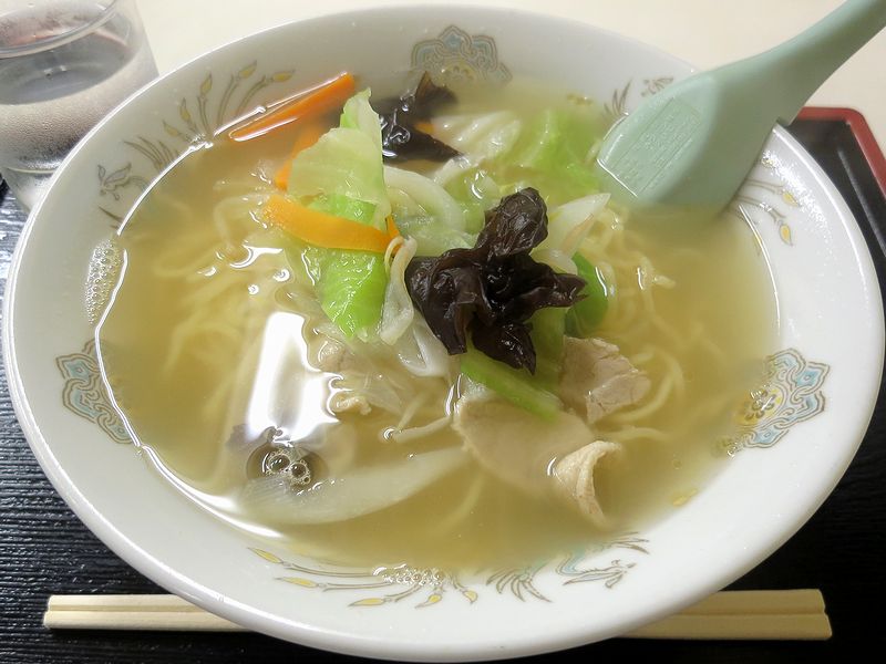 で、これまでさんざん飲み食いして、本日の〆でいただいたのがこちら。食欲をそそるゴマ油の匂いがしてうっすら白く濁ったスープはかなりあっさり。そこに野菜と豚肉が入り(量が少なめなのはご愛敬かと。)、そして細めの縮れ麺(さらっといただけるボリュームです。)という組み合わせが、きわめてスタンダードという感じです。また、卓上のコショウがとても良く合いますね。