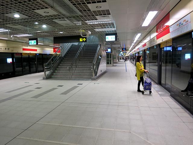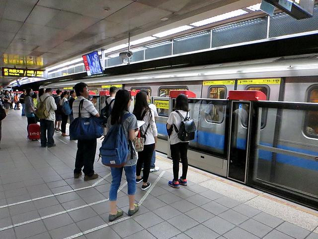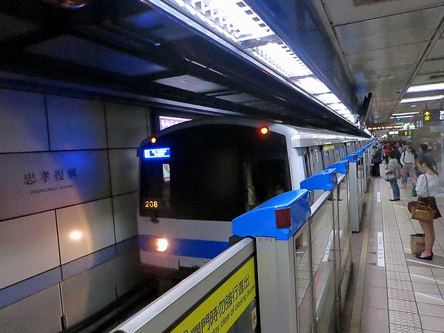 忠孝復興站で今度は地下鉄の板南線に乗り換えるのですが、その際、文湖線をまたぐ跨線橋上で、駅に接近する文湖線の特拉(マトラ)VAL256型中運量電聯車に向けて一眼レフを構えている地元っぽい男性(しかも女性連れ)が。台湾には鉄道ファンは居ないという思い込みがあったのですが、あとで調べてみると、火車迷(ホアツァーメイ。ちなみに当地では鉄道列車のことを火車(ホアツァー)と言います。)もしくは鐵路迷(ティエルーメイ)といった、日本で言うところの鉄道ファンを指す言葉があるんですね。で、そのファン氏の隣で私も列車を写真に収めてから、板南線の月台へ。