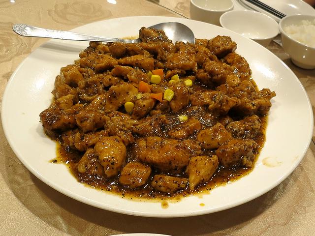 で、それ以上に混んでいたのが九份に着いてから。九份の観光って基本的に、「三横一縦」(横に3本、縦に1本)の街路をぶらつく感じになるのですが、三横(下から汽車路、軽便路、基山街という)の街路を貫く一縦の豎崎路という街路というか階段の、最初の区間となる軽便路との交差点まで登って出た広場は、もの凄い人口密度でした。それでその広場に面した九戸茶路というお店で、ツアーに付いている夕食を。軽食と聞いていたのですが、料理が大皿で5品と、白米、そしてスープという、普通の食事といって差し支えない量。またお味の方は悪くなく、キャベツとタケノコ、そしてスープはあっさり、麻婆豆腐とナス、そして鶏肉はピリ辛スパイシー。もっとも、スパイシーと言ってもギンギンに効いているわけではなく、どこか抑えめに感じるのは、先程欣葉でも思ったことでした。ただ、その欣葉で出発前にも満腹になるまでいただいてしまったので、残念ながらここではあまりいただけなくなってしまいましたが。