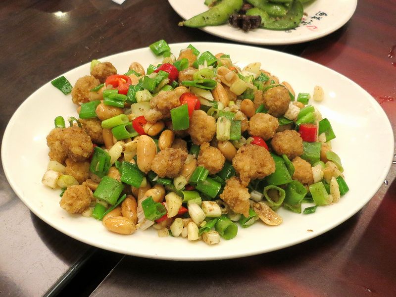 【イカの嘴とピーナッツなどを炒めたもの】