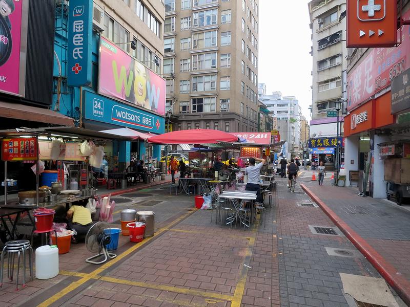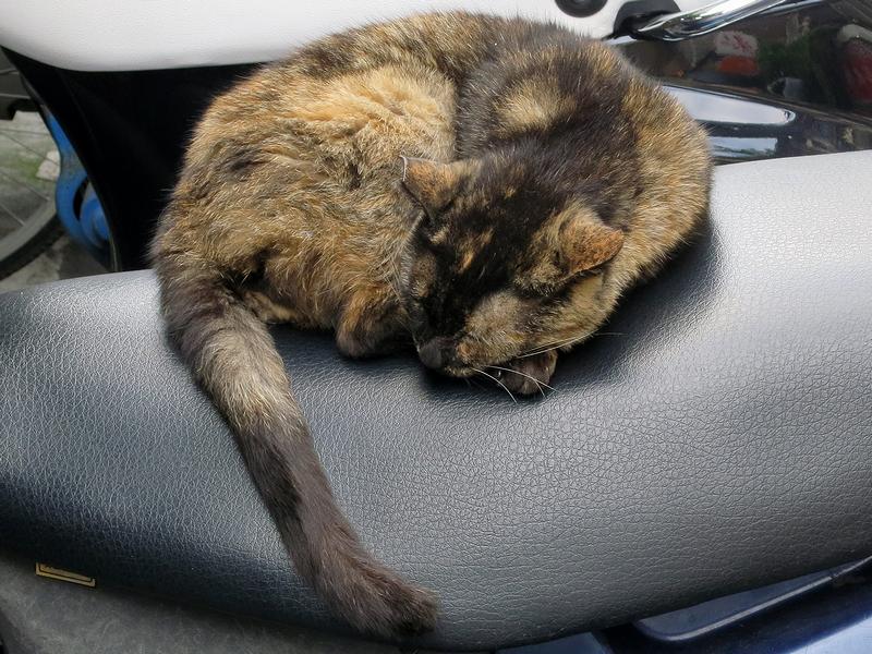 その後、営業準備中の朝市の脇を通り、途中で見かけた猫を写真に収めたりしつつホテルへ。で、後述するお出かけまでまだちょっと時間があったので、朝の街角、というかホテル近くの十字路に立ってみました。午前7時半ごろという時間だったのですが、時間的に通勤ラッシュにさしかかったのか交通量が多く、これは台湾に着いて以来感じているのですがその中でもスクーターが数多く走っている気がしますね。ちなみにスクーターを含む二輪車(機車)は、交差点では二段階左折と決まっているようで、走行中はアクセル全開という感じで飛ばすのですが、二段階左折だけはきっちりと守られているような印象。もっとも、交差点に設けられた左折待ちスペースからの発進は、さながらシグナルGPのようですが。それと、当地の幅員の広い道路では、バス(公車)がセンターライン寄りに設けられた専用レーンを走行するんですね。そこには、空港からのリムジンバスや路線バスが入り交じって、ひっきりなしに走っていました。