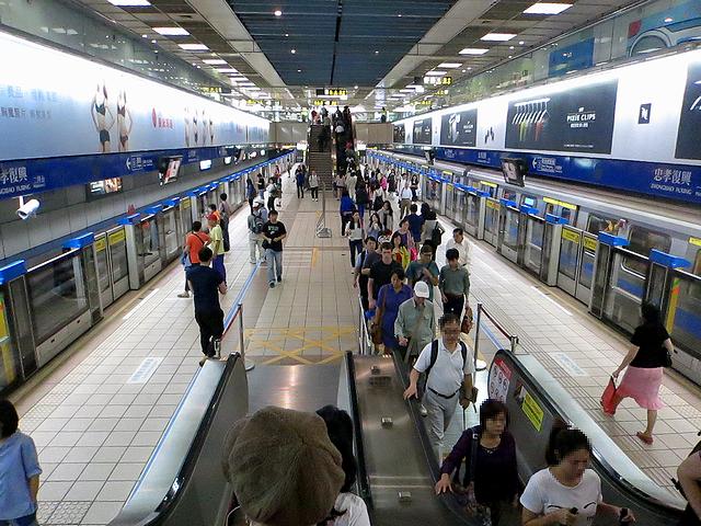 それでこの日は、帰りの飛行機に乗るまではフリーとなっていたのですが、ほぼ全員で、今回のツアーには含まれていなかった台北101に行ってみようということになりました。で、その移動には、台北市内を縦横に走るMTR(台北捷運(タイペイジェユン)、metro Taipei とも)を利用することに。計画の際、スッパリ諦めた筈の台湾の鉄道に乗る機会を得たのですが、正直なところ、何かのついでではなく、襟を正してキチンと乗りたかったんですよねぇ。でもそんなことを言っても仕方が無いので、皆にくっついてホテルから最寄りの民權西路駅へ。ここから淡水信義線という路線で乗り換え無しで行けるようです。そこで以前MTRに乗ったことがある同行者がいたので、切符の買い方や乗り方を教えて貰ったのですが、これがとっても簡単!次に来る機会があれば、MTRの全線完乗がてら台北の市内観光というのも良いなぁ、と思ったりして。そして、いよいよ乗車となったのですが、乗った感想なんかについては、この後のことを含めて別記事に書いたとおり。途中で空いた席に座ったり、他の乗客を見るとはなしに見るなどして、約20分ほどではありますが、初めての台湾の鉄道、そしてMTRを味わいました。