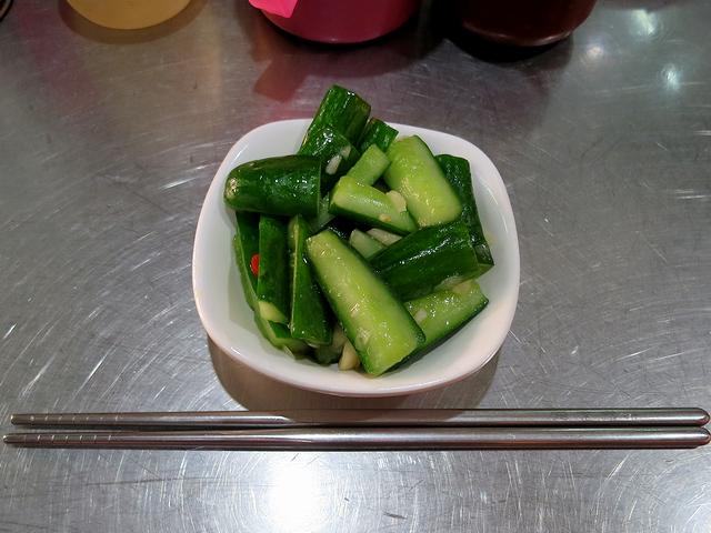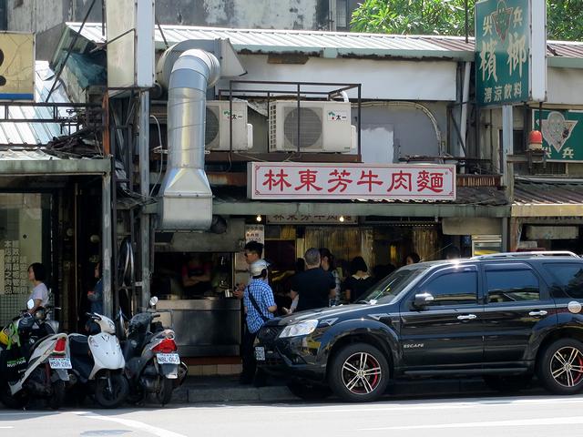 但仔麺をいただき終わったのが午前11時半頃。残り時間と腹具合を勘案して、次のお店が最後になりそうだったのですが、悩みに悩んで決めたのが、牛肉麺の超有名店という林東芳牛肉麵。その最寄り駅は先程乗り換えた忠孝復興駅だったので、板南線で一駅戻るだけなのですが、駅からは若干距離があり、お店に着いたのは丁度お昼頃。それにしても、10月も末だというのに台湾は暑く、途中道を間違えたこともあって駅から20分以上歩いたのですが、おかげですっかり汗だくになってしまいました。そんなちょっとだけ苦労して到着した林東芳牛肉麵ですが、その苦労以上に素晴らしかったです。詳しくは別の記事に書いたとおりなのですが、雰囲気のある古くて狭いけど活気ある店内や私が日本人と判ると日本語で色々説明してくれたお店のマダム、そして何より、台湾に来て初めてではないかという歯応えのある麺と濃密な牛の旨味の詰まった牛肉麺そのものも大変美味しく、一緒にいただいたキュウリとも合っていて、とても感激しました。その後、一人でお目当てのものを食べ歩くことが出来たという達成感を胸に忠孝復興駅まで戻り、板南線、そして途中の台北車站駅で朝も乗車した淡水信義線の列車に乗り換えてホテルの最寄りである民權西路駅に戻り、単独行動が終了。皆と合流するまでまだ多少時間があったので、ホテルのトイレを借りて汗まみれの服を着替えたり、近くのスタバでアイスコーヒーを飲みつつ涼んだりしました。(スタバは英単語と指さしで何とか注文できました。)