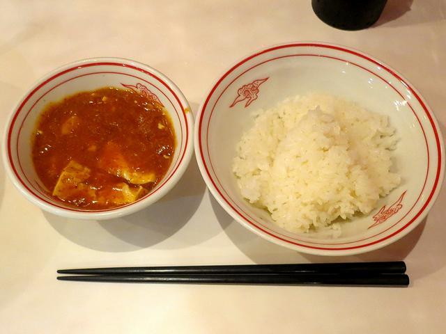 こちらは、一緒にいただいたもの。中本さん定番のサイドメニューですが、前回のプチ麻婆丼同様、蒙古麻婆が以外と辛いなという印象。それと半ライスは、某有名サイトのオススメどおり、甘縁坊の肉類をかけると良いですね。更にスープをかけてもまた。そして最後は麻婆も混ぜて、見た目的にはアレですが、これもまた良い感じでした。