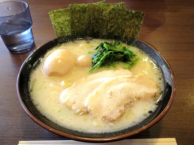 そんな訳なので、食券はこんな感じで購入。また、ラーメンは、味濃いめでお願いしました。それで、登場したライスにスープをレンゲで1杯分と、豆板醤をスプーン1杯分、そしてラーメンにニンニクをスプーン1杯分ずつ混ぜたのち、まずはラーメンから。豚のパンチがグイグイと迫ってくるこちらのラーメンには、やっぱりニンニクが良く合いますね。あと、味濃い目にしたのも良かったというか、丁度ライスが欲しくなる濃さです。そしてその後、脂でテカった海苔でライスをくるんでいただけば、もう!!実はこの食べ方、個人的に某家系インスパイアのお店でいただく方法をアレンジしたものなのですが、コッテリとしたラーメンをライスと共にいただく時、間違いのない食べ方だと思っている次第で。あとは、ラーメンもコショウやショウガ、タマネギでカスタマイズしつつ、ライスの方はチャーシュー、ほうれん草、追加のうずらも一緒に海苔で巻いてみたり、最後は残ったスープを残ったライスに掛けてみたりして、存分に堪能いたしました。