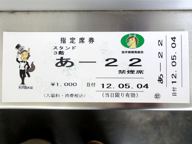 駐車場にクルマを停めた後は、競馬場の正門付近に移動。入場券を買おうとしたら通常は200円のところ、本日は無料になっていました。そして、特別観覧席の指定席券を購入。料金は1席1000円になっています。(※後日追記:指定席に入場料が含まれているって、この時は気が付いていませんでした。)
